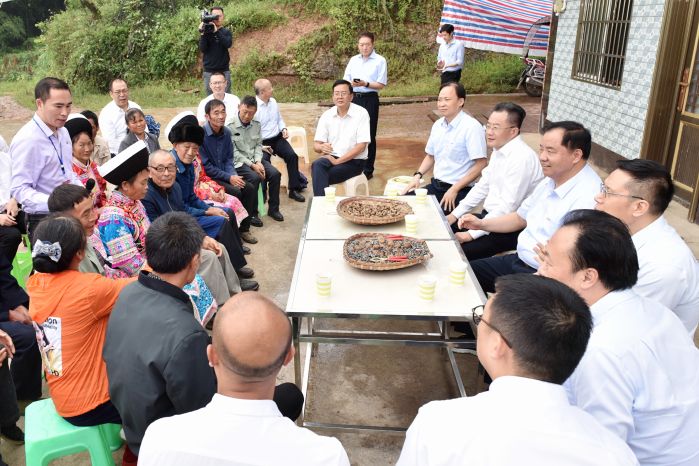在白臘苗族鄉(xiāng)高峰村,陳肇雄一行實地查看了“支部共建、結(jié)對幫扶”機制落實情況,聽取了村委會發(fā)揮“黨建扶貧綜合陣地”作用,為黨員活動、技術(shù)培訓(xùn)、農(nóng)產(chǎn)品上網(wǎng)、鄉(xiāng)村醫(yī)療等提供“硬件”條件,幫助提升黨建、民生服務(wù)和智慧農(nóng)牧業(yè)的情況介紹,鼓勵大家要用好信息技術(shù)手段提高本領(lǐng)。