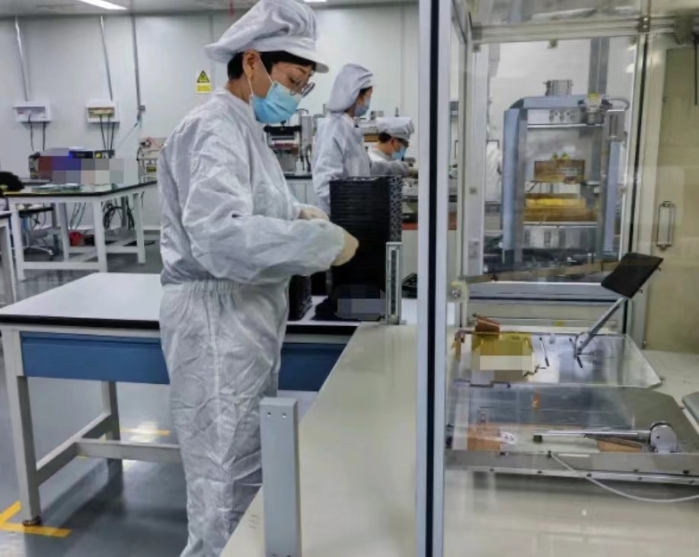 在空間型號單體電池生產車間,20多名員工在各自崗位上如火如荼地工作著,卷繞、焊接、裝配、檢測等多個工序繁忙而有序,設備高速運轉的聲音此起彼伏,大家都在為高質量完成各項空間型號電池生產而努力奮斗著。